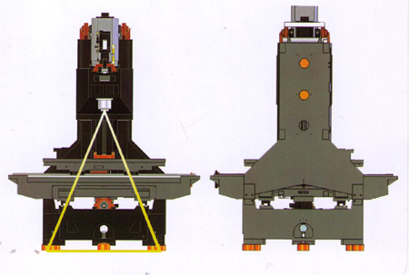 ●整部機(jī)身采金字塔黃金比例設(shè)計(jì),絕佳跨距及全行支撐,機(jī)臺(tái)在高速移動(dòng)下保持其原有剛性與精度,提升位移精度。