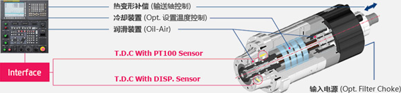 主軸的輪滑方式為了最大限度的抑制主軸的發(fā)熱,適用了具有出色的冷卻特性的油,空氣混合輸入方式,以減少熱變形。