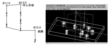 數(shù)控加工中,換刀所用的時間相對于快速走刀的時間要長很多,所以要提高加工速度,就要減少換刀次數(shù)。一般情況下,每個孔都要經(jīng)過幾個工序使用幾把不同的刀具加工。例如,加工Φ12.8、Φ14.0和Φ10.0的三個孔,各個工序所用刀具如右表所示。