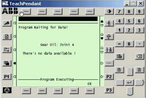 當(dāng)一個設(shè)定的時間到后,在 示教器(TPU)上會有提示信息 |