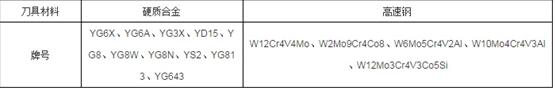 為提高生產(chǎn)效率,應(yīng)盡可能使用硬質(zhì)合金刀具,但應(yīng)選擇與鈦合金親和力小、熱導(dǎo)性能良好的高強(qiáng)度細(xì)晶粒鎢鈷類硬質(zhì)合金,如表1所示: