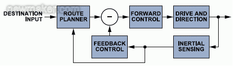 行程計劃需考慮可用路徑、已知障礙位置、機器人能力及任何相關(guān)的任務(wù)目標(biāo)。例如,對于醫(yī)院里的標(biāo)本遞送機器人,遞送時間非常關(guān)鍵。行程計劃被饋入控制器,后者生成傳動和方向配置文件以便進行導(dǎo)航控制。這些配置文件可根據(jù)行程計劃執(zhí)行動作和進程。該運動通常由若干檢測系統(tǒng)進行監(jiān)控,各檢測系統(tǒng)均產(chǎn)生反饋信號;反饋控制器將信號組合并轉(zhuǎn)換成更新后的行程計劃和條件。